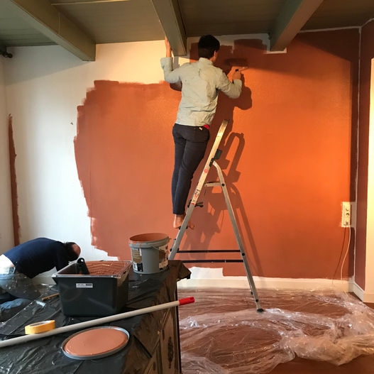Kortom het was even puzzelen om de juiste kleur roodbruin te vinden die met het bestaande licht, de harmonie zou versterken. En mission accomplished!