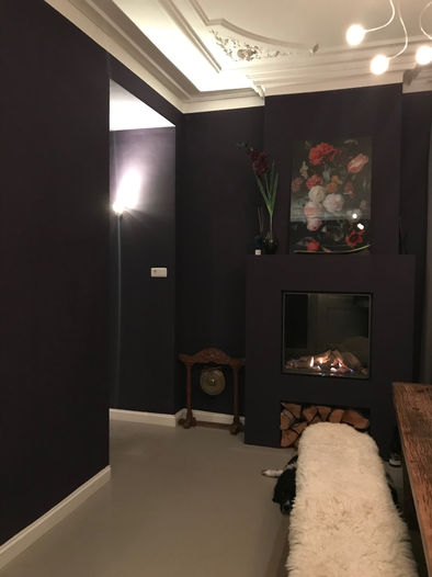 Mijn enthousiasme over kleuren deed hun denken aan de paarse muur die we in hun vorige huis in Haarlem hadden ‘bedacht.’ Die paarse muur was het resultaat van twee verschillende wensen: Esther wilde een rode muur en Jan Willem licht blauwe muur. Mijn paarse ontwerp overtrof hun eigen verwachtingen!